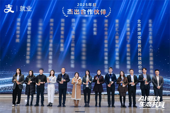 1月8日,以“AI驱动 生态共育”为主题的支付宝就业与职业教育生态大会在杭州举行。北京环球优路教育科技股份有限公司获授支付宝就业“2025年度杰出合作伙伴”荣誉奖牌。